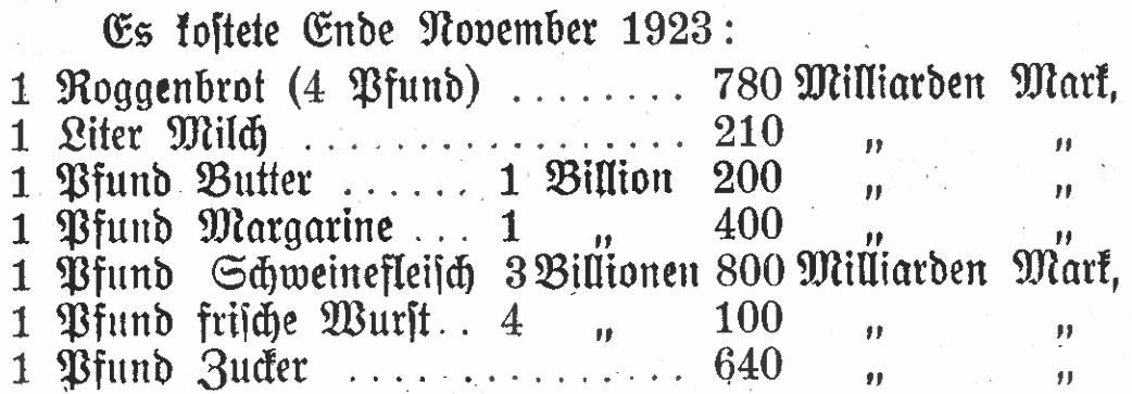 Demgegenüber besagte es nichts, daß die Arbeiter und Beamten als Lohn bzw. Gehalt Milliarden und Billionen Papiermark gezahlt erhielten, da diese in den nächsten Stunden schon in nichts zerflossen.